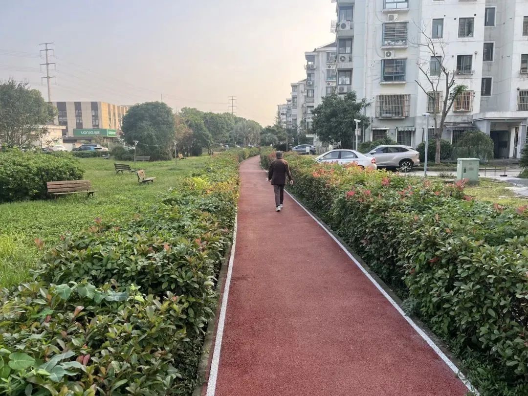 在拓宽全民健身服务半径方面,盈浦街道也尽了最大努力。民佳社区市民健身步道的表层迎来了全面翻新,走在上面还能感受到轻微的反弹感。住在民佳社区的赵女士对翻新后的步道赞叹不已,说她现在每天散步都更开心了。