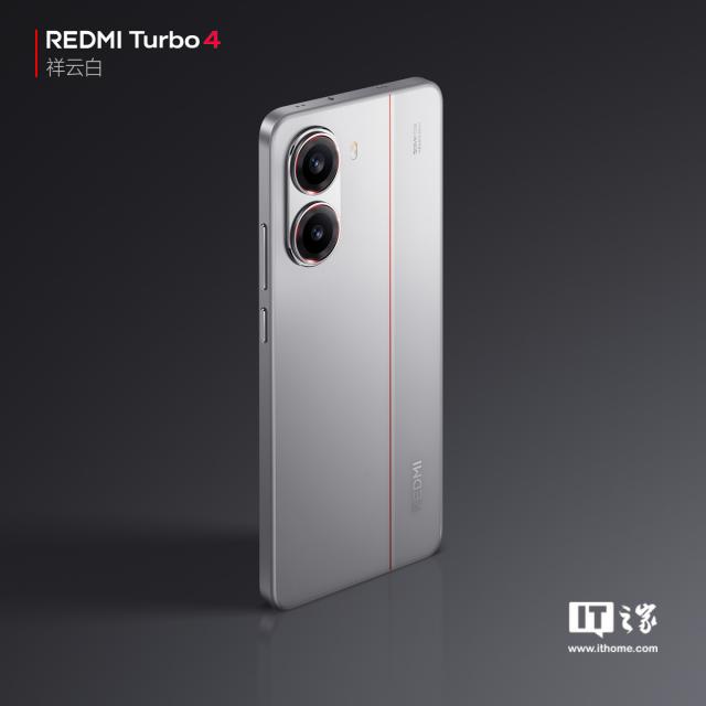 根据今天早些时候的报道,REDMI 新机设计细节由产品经理胡馨心发布:REDMI Turbo 4 手机将采取 2.5D 玻璃后盖,主色“祥云白”在镜头模块上叠加钢琴烤漆工艺,「特别设计」能量红腰线。