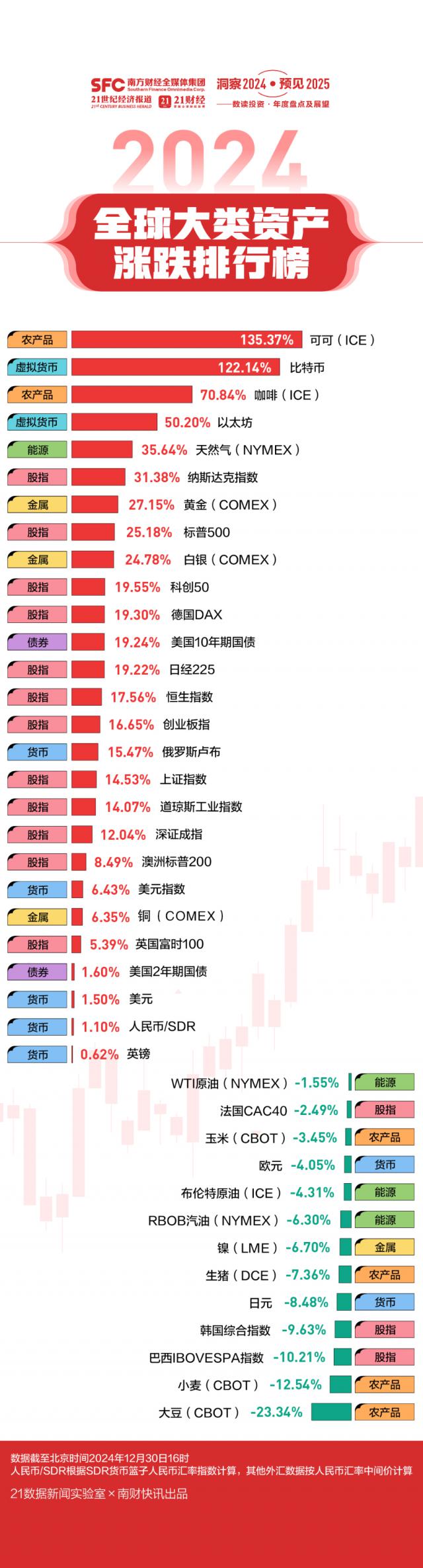 具体而言,2024 年度交易市场上涨的品种有哪些?哪些正在下跌?2025 每年的主要资产前景如何?21 资料新闻实验室 × 南财快讯带你一文阅读>>