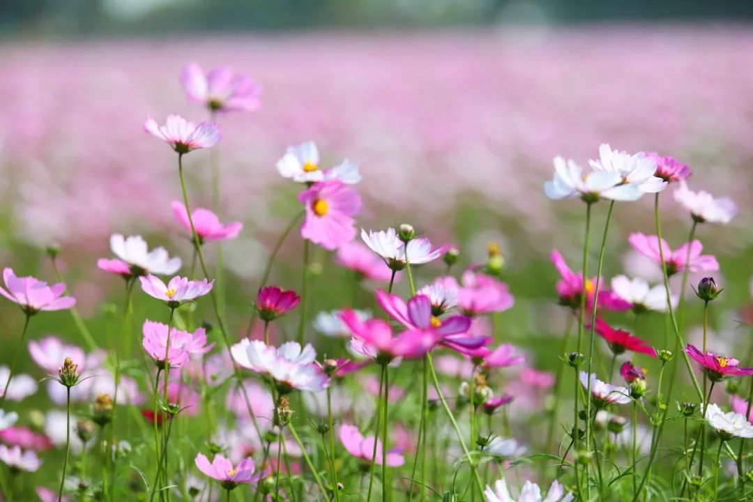 新年,江海将“粉”你!超过40亩的格桑花盛开
