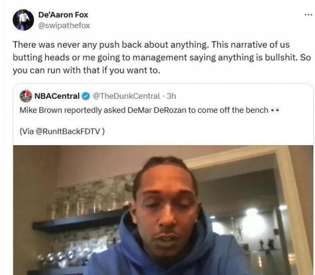 我听说这里有一些关于福克斯的观点,不管是公开的还是私下的。球员们不同意教练。我听到一些关于迈克斯的谣言。 - 布朗希望德罗赞替补,这让他们的管理层很难做出选择,一方面是年度最佳教练,另一方面是他们的全明星。