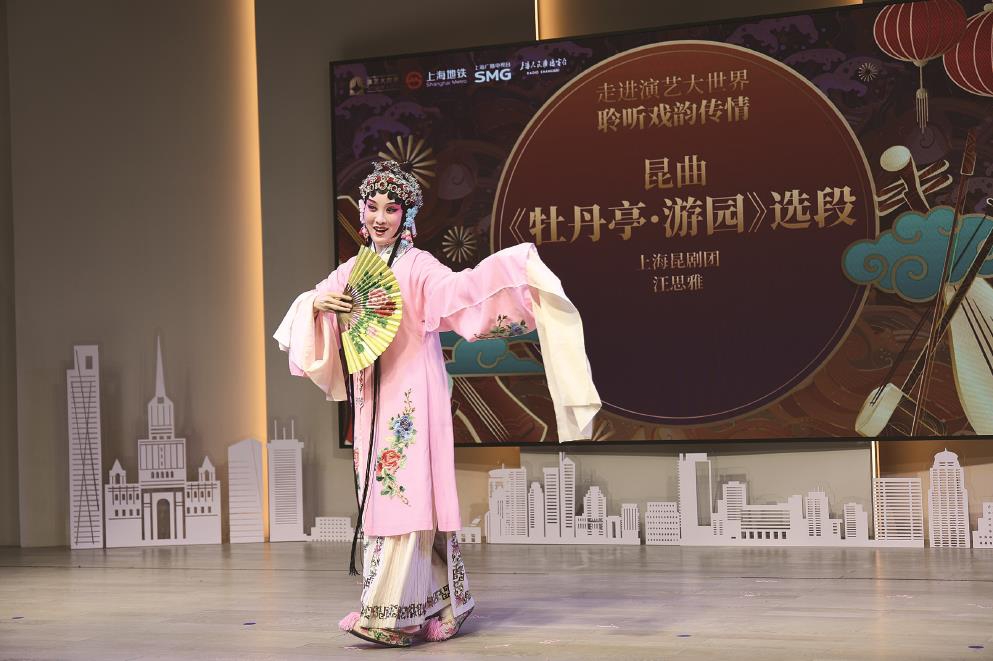昨天在地铁人民广场站公共空间“地铁音乐角”举办了“走进演艺大世界,聆听戏韵传情”迎新表演,邀请市民和游客在城市公共空间遇见中华传统艺术,分享文化之美。这次精彩的邂逅持续了60分钟左右,表演内容丰富多样,包括京剧《拾玉镯》《霸王别姬》、昆曲《牡丹亭·游园》、电视剧《红楼梦·读西厢》、沪剧《探情》、淮剧《白蛇传·游湖》、评弹《声音慢》等脍炙人口的选段。