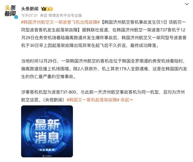 当然,韩国也可能与飞机本身有关。首先,这架飞机已经服役超过了服务。 15 年复一年,其次,波音近年来容易出故障也不再是第一次了。