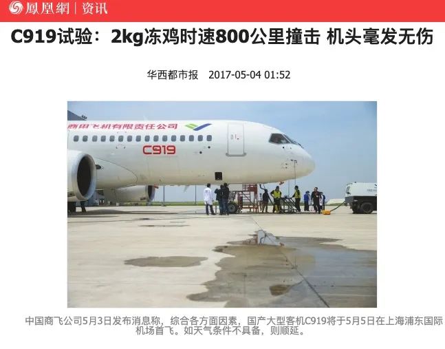 现代化飞机研制过程中,要进行严格的鸟撞试验,确保飞机遇到这样的事情后能够安全工作。像我国的 C919 ,美国在研究开发过程中进行了撞鸡实验。