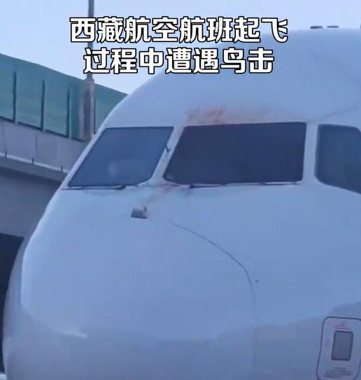 而且就在几天前 12 月 西藏航空20号 TV9873 在起飞过程中,航班也撞上了鸟。飞机前窗有明显的血渍,机组人员立即决定返回航班。