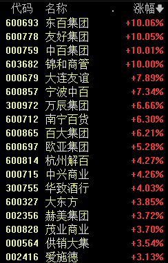 今天上午,消费股反弹,钻石、白酒、免税店、零售等板块涨幅居前。具体来说,在钻石培育板块,黄河飓风涨停。在零售部门,友好集团、中百集团等多只股票都有涨停。在白酒行业,只有山西汾酒、泸州老窖股份有限公司略有下跌,其他股票都在上涨,皇台酒业、岩石股份等股票涨幅居前。