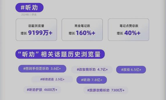 据千瓜数据显示,截至204年第三季度,仅“听劝”话题访问量就达到9199万。 第二,相关话题的访问量已基于“亿”。可以看出:在数字时代,听劝式营销作为一种新的营销方式,已成为品牌与消费者双向沟通的重要桥梁。