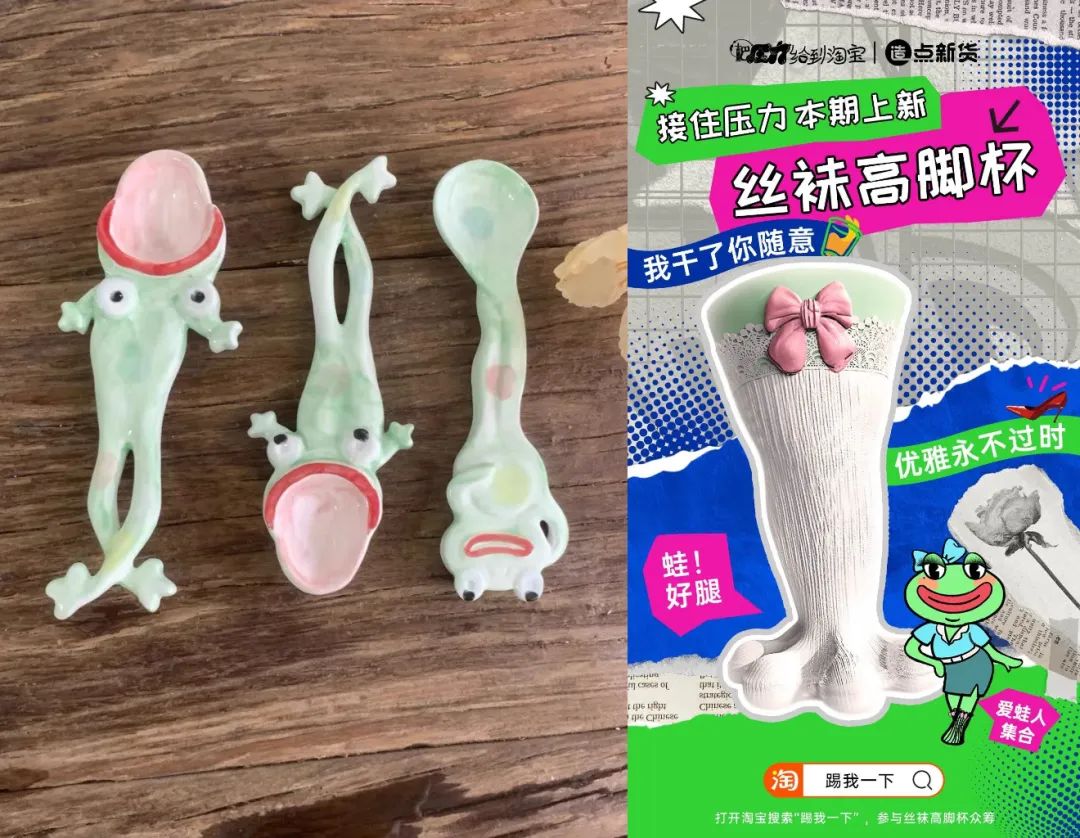几年前,设计师陈二沟在个人设计的青蛙勺的基础上,制作了丝袜高脚杯,出人意料地走红。评论区的网友一夜之间说:“我一夜之间做,求你了。”、“求链接”和“求量产”。知情后,淘宝第一时间联系设计师和工厂寻求合作,通过阿里鱼“创造一些新产品”平台打开众筹。项目上架后5天内,100%众筹完成。而且正因为如此充分,淘宝在网友眼中也有了“讨好型人格”。“万能淘宝”这个人设也深深植入了用户的心中,顾客对淘宝也有了更强的信任。
