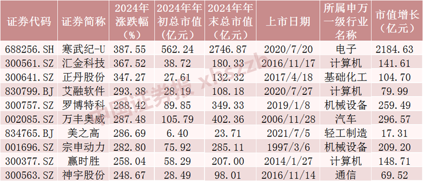 2024年市值增长前十股