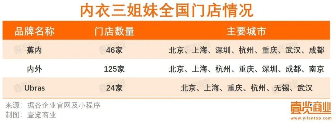 最后从香蕉内官网了解到,到目前为止,香蕉内在20个城市已经设立了46家门店,其中5家是1.0版本的门店,41家是2.0版本的门店。与香蕉内同类品牌相比,NEIWAI也采取了线下拓展的策略。其小程序显示,全国有125家门店,与香蕉内线下门店相比还有差距。