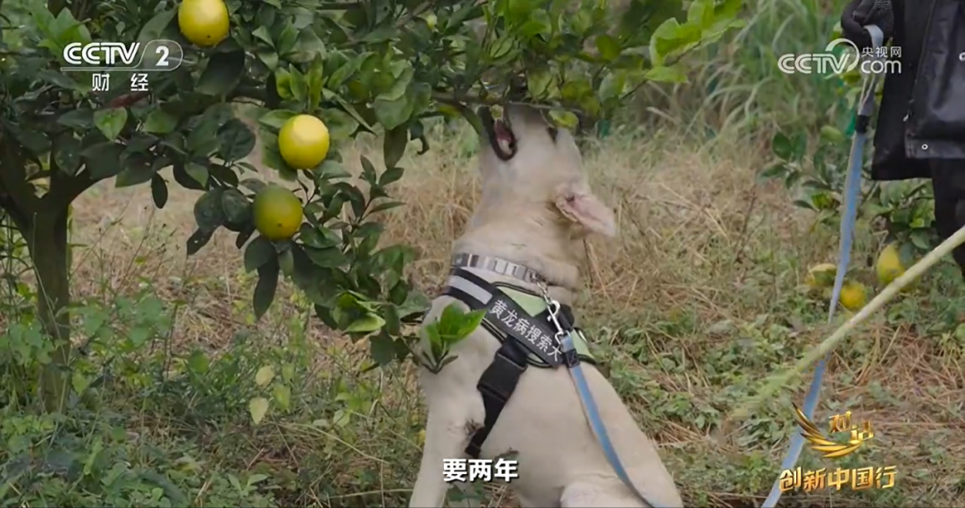 在这个节目中,钟邈邈特别展示了一种创新的方法——通过训练黄龙病搜索狗来检查黄龙病。这些特殊的“战士”可以更及时地发现病害隐患,这比果农的肉眼判断更准确。