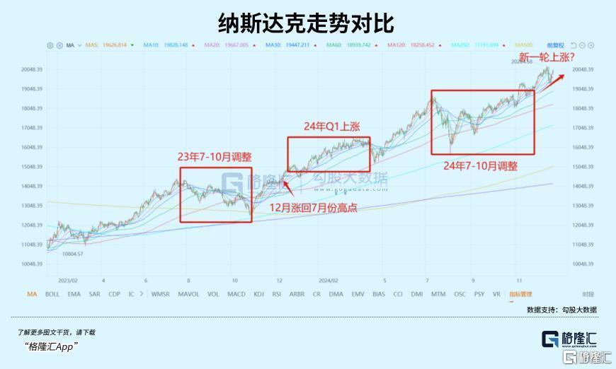 尽管下半年经济通胀、降息节奏和最引人注目的大选扰乱了指数走势,但纳斯指数年内最大回撤仅为15%,并未跌破长期趋势线。