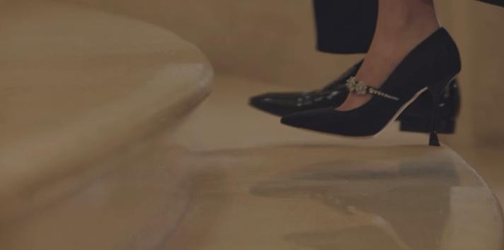 洪海仁(金智媛)是韩剧《眼泪女王》的女主角 饰品)是Queens百货公司的总裁,也是Queens集团财团的第三代,被称为“百货公司女王”。在剧中,她去商场检查时,穿着一双红色薄底高跟鞋,走路很有活力。