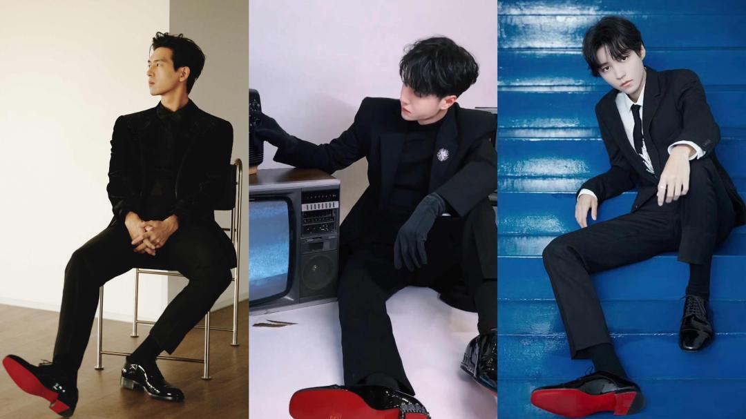 除偶像剧外,很多男明星在穿正装的时候也会配上一双红色薄底鞋,霸总气质一下子就上来了。