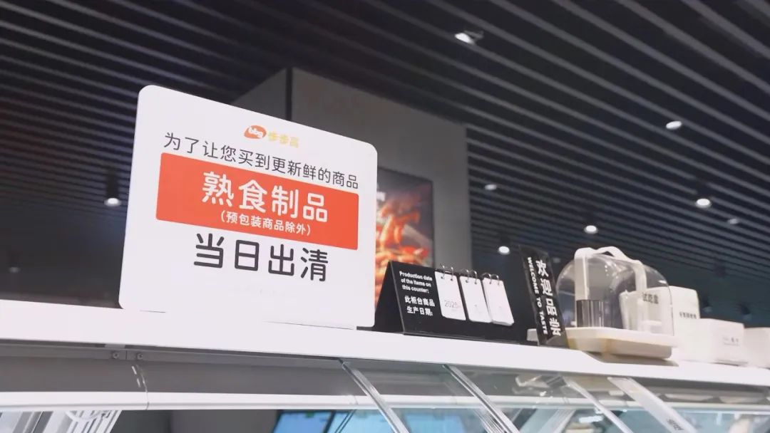 店铺更新迭代了原有设备,增加了日常冷链,更换了生鲜环岛和展示道具,保证了商品的新鲜度和质量。很多商品从过去的昵称变成了包装销售,散包价格相同,干净卫生;生鲜、水果切割、加工等商品打出“日清”的口号,当天卖清,第二天不卖。