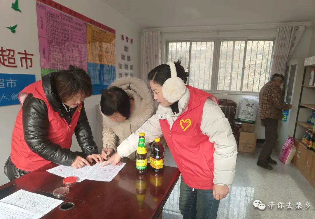 在现场,货架上摆满了各种各样的商品,包括食用油、大米、卫生纸等必需品。村民们拿着积分卡,有条不紊地排队选择自己喜欢的物品。工作人员仔细检查积分和注册信息,整个过程井然有序。