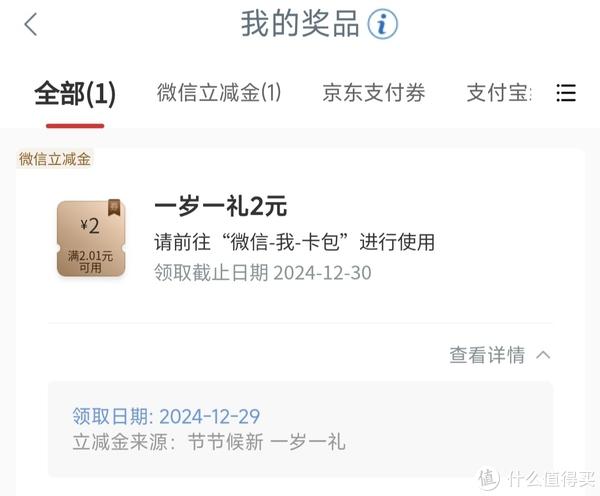 进入“任务中心”会自动跳出"一岁一礼"",每个人都可以点击抽奖。因为笨笨当时没有截图,但是可以在任务列表中看到这个任务,已经进入了。 2 元。