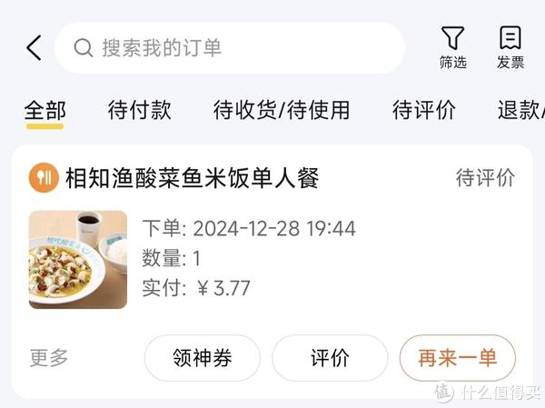 昨天吃了酸菜鱼套餐,用了优惠券后花了钱。 3.9 元。