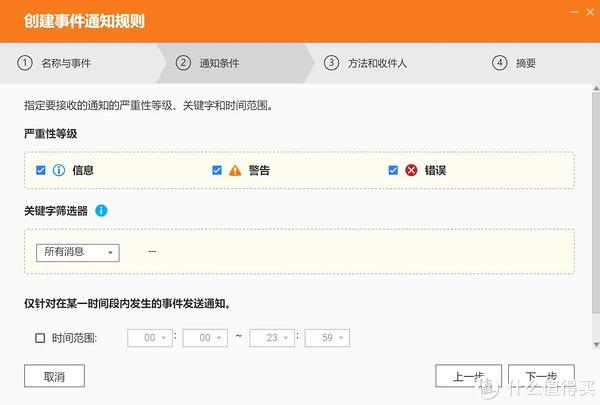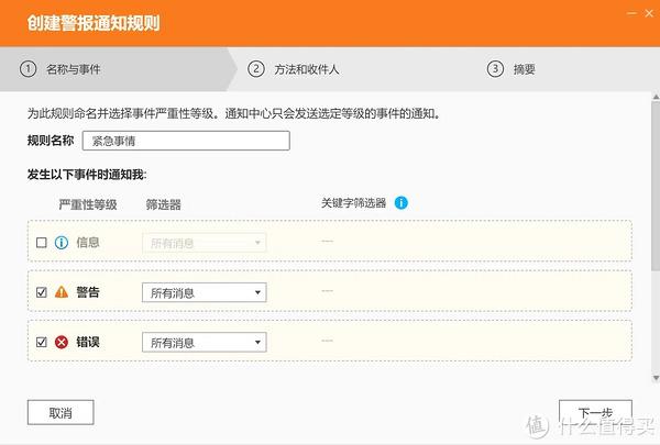 然后制定事件通知规则,可以修改规则名称,选择显示的项目。