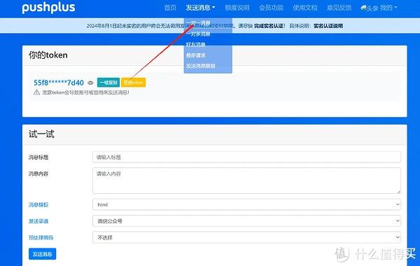 然后微信发出提示。请注意,在此操作之前,需要绑定。 pushplus 微信官方账号,还要进行认证,认证费用 1 元。