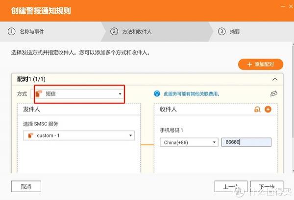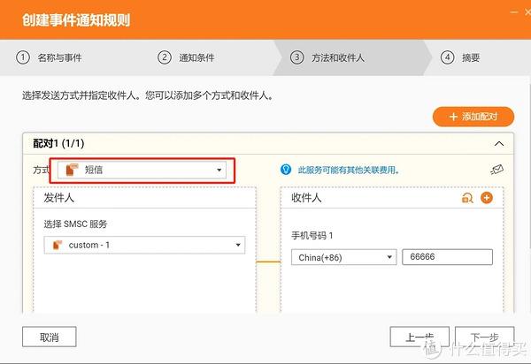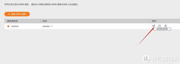 点击通知中心左侧菜单栏中的“服务帐户与设备匹配”,然后点击短信,然后点击下面的“添加” SMTP 服务】。