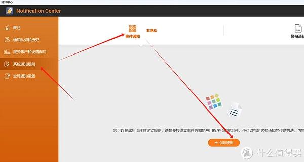 接着点击通知中心左侧菜单栏【系统通知规则】,设置事件通知,这里可以定制通知规则。