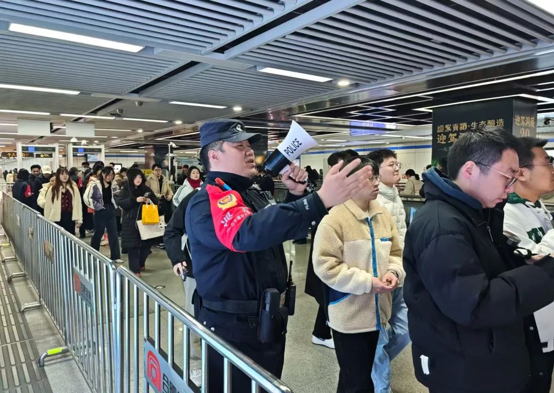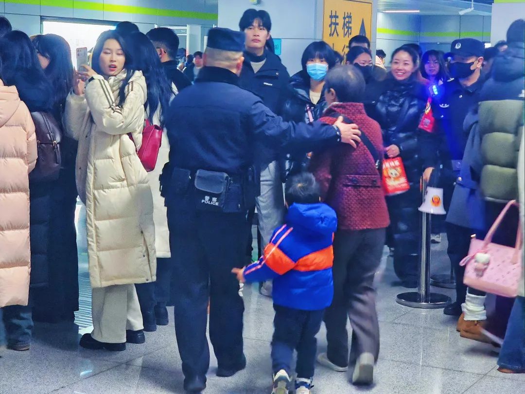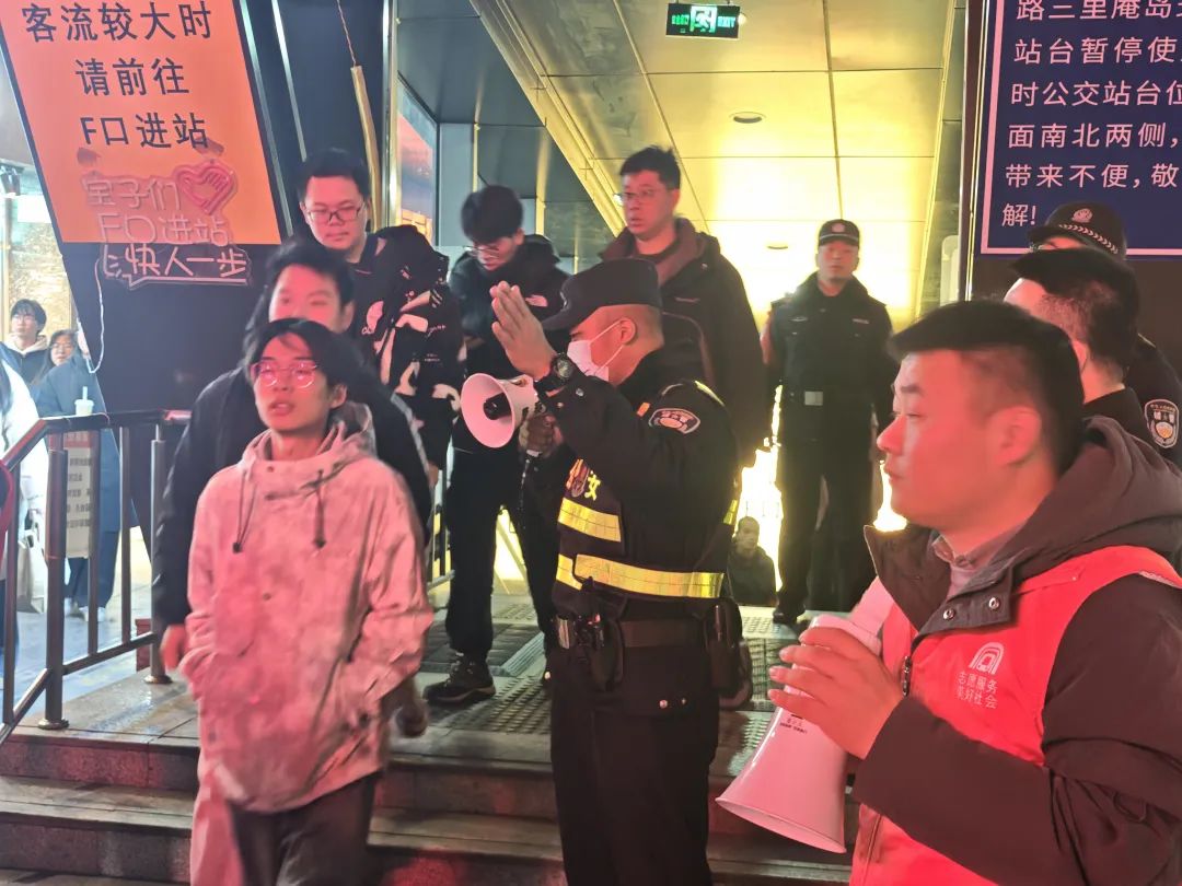 十二月三十一日晚,地铁二号线四牌楼站、三里庵站等网站人流较大,瑶海分局三十埠站派出所值勤警力全力保障服务。
