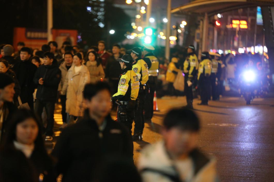 2024年12月31日晚,合肥市公安部门坚持最高标准、最严要求、最强措施,全力投入到元旦期间的各项安全管理工作中,最大限度地将警力放在街上,压在一线。全市公安机关众多民警和辅警重点关注景区、商业区、枢纽站等人流密集场所,加强检查值班,全力维护元旦过年的安全有序。