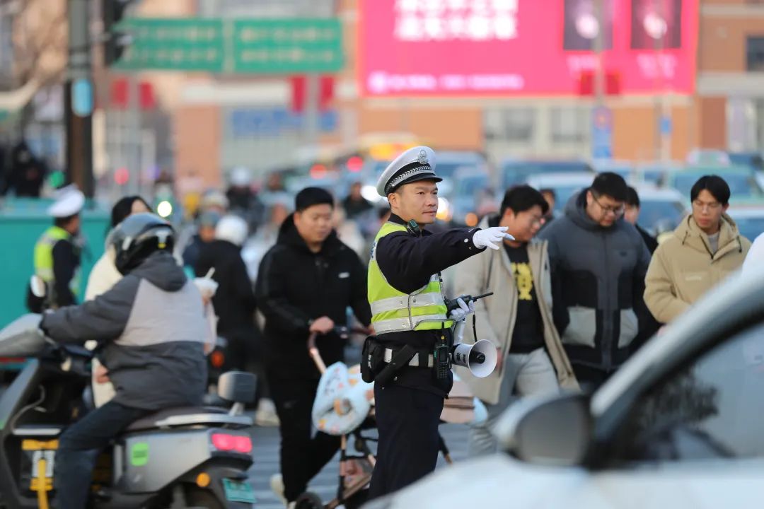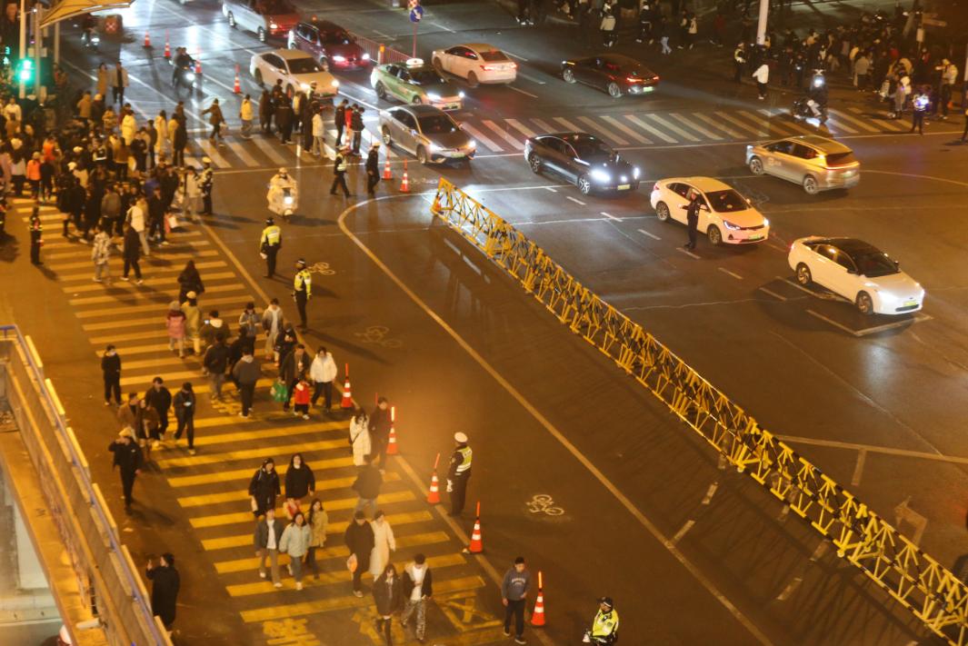 交通管理部门提前部署淮河路步行街及周边道路值班警力,指挥交通疏导,有序控制人流,全力保障市民安全“除夕”。