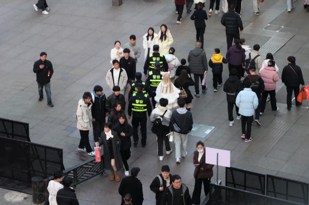 大东门周边步行街值勤警力高度重视重要时期的人流变化,科学调整警力部署和疏导策略。