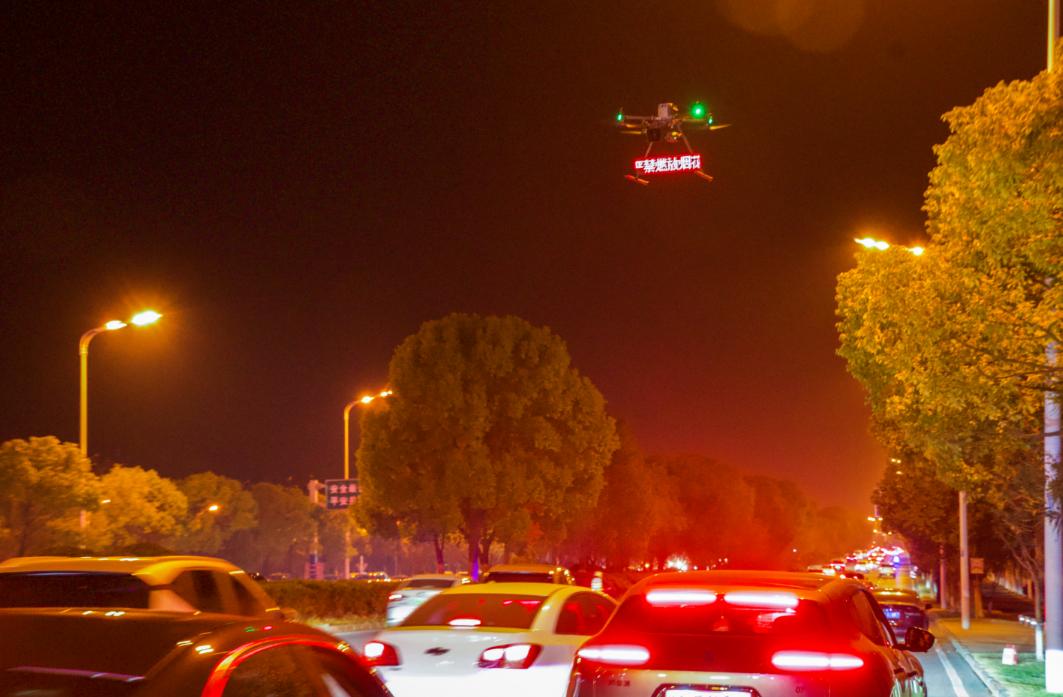 交通管理部门利用无人机进行禁燃宣传。