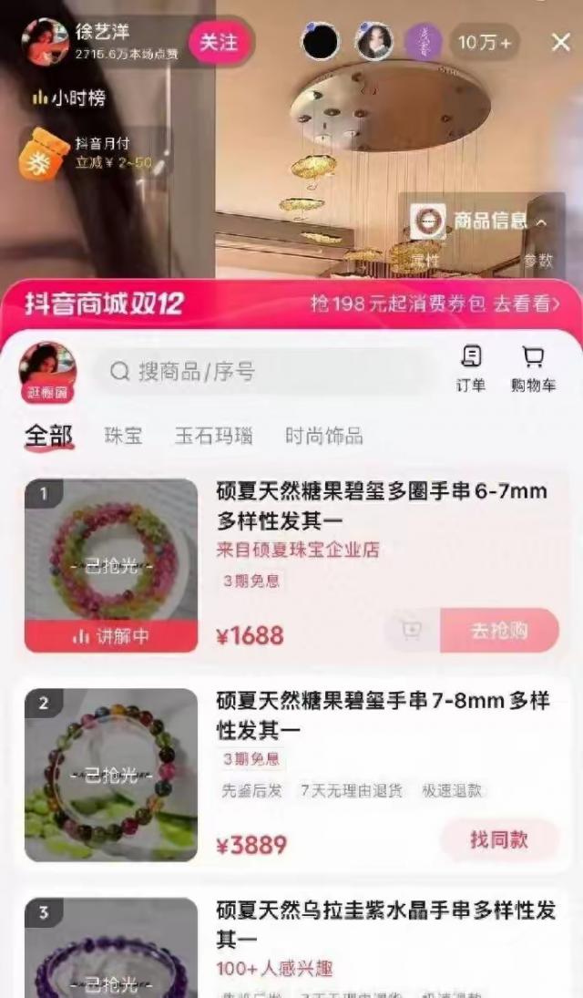 举例来说,年轻人最喜欢戴的手镯,经过徐艺洋的包装和宣传,几十块钱的价格在她的直播间里被炒成了几千块。