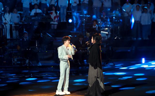 这是一场酣畅淋漓的经典串烧。乘山而来,整个舞台都是闪光的,快歌和慢歌的变化,热情与深情交织。