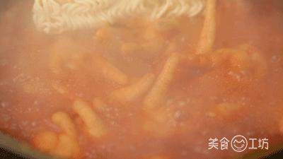 5. 加入火鸡面,等面条吸足汤汁变软,炒匀。