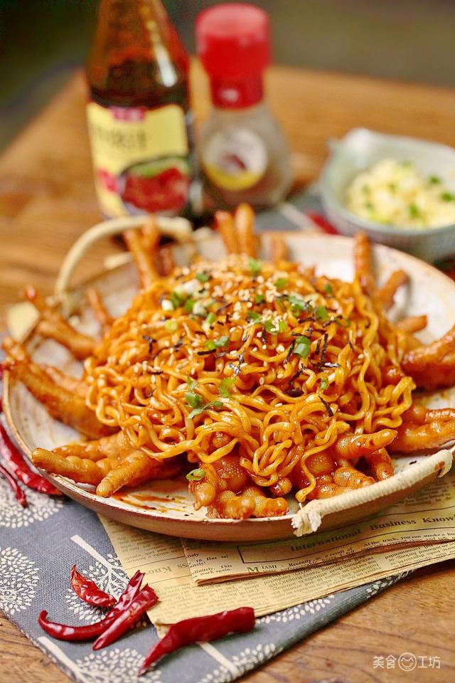 火辣辣的情歌,火辣辣的歌唱;火辣辣的花瓣,开出吉祥的花瓣。一大早,美食君就被这盘红红火火的鸡爪火鸡面给辣翻了!