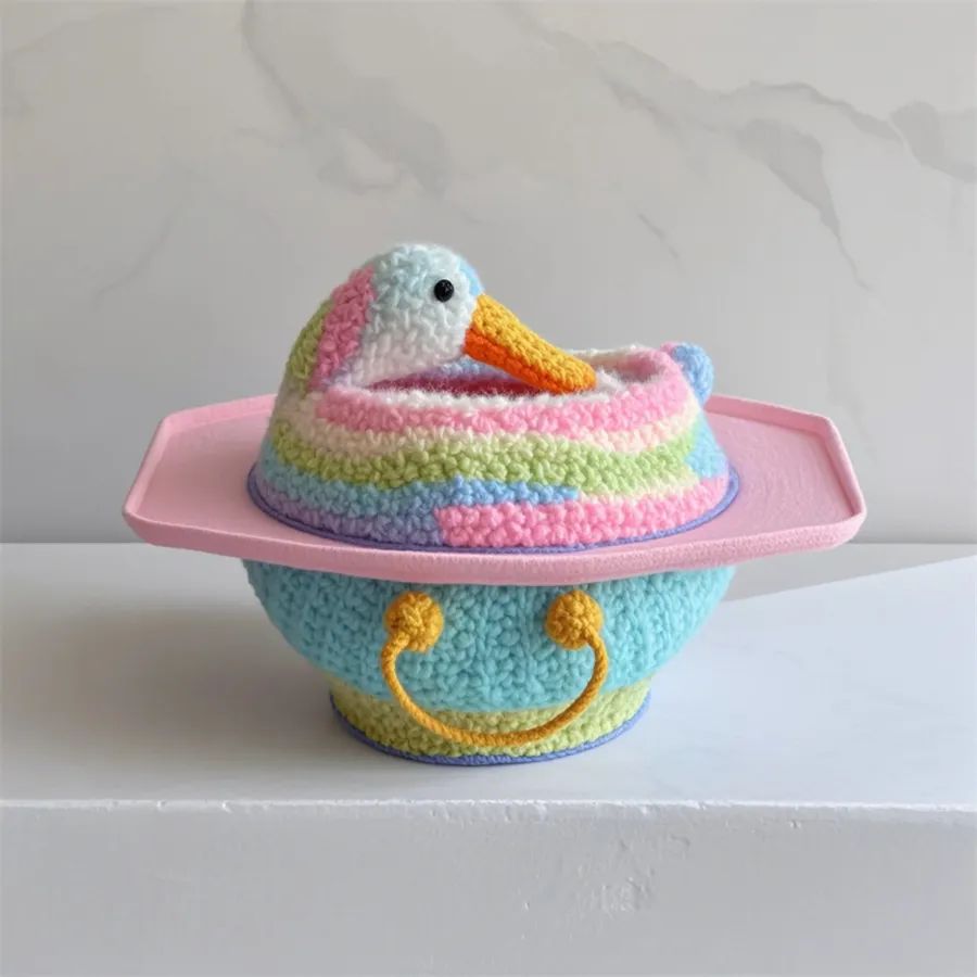 鸭盖,厚底,云头足;鸭眼镶嵌红色料珠,全身刻有羽毛,器腹刻有鸭戏图和诗歌。