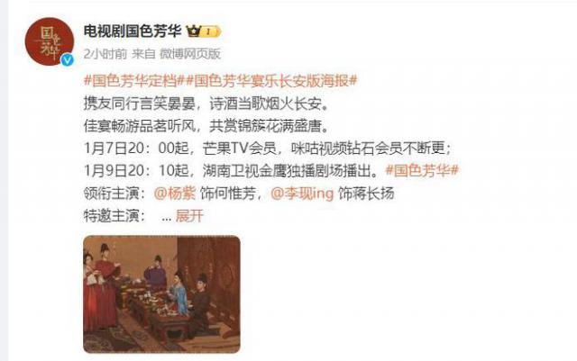 经过几天的预热,备受关注和期待的《国色芳华》正在 2025 2008年第一天正式定档,确定将在 1 月 7 芒果日起上线 TV 和咪咕视频一起播放, 1 月 9 日起上星芒果台播出!选择在深夜定档,《国色芳华》也是铆足了劲给观众惊喜!