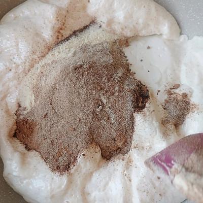 5、加入奶粉、可可粉和咖啡粉,炒匀;