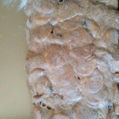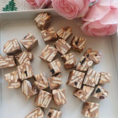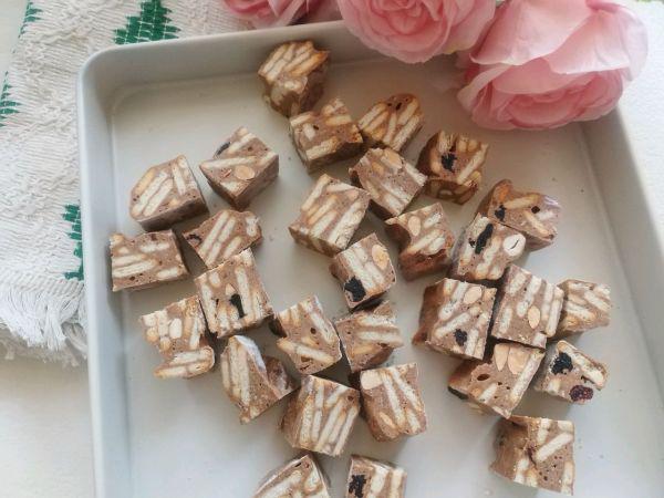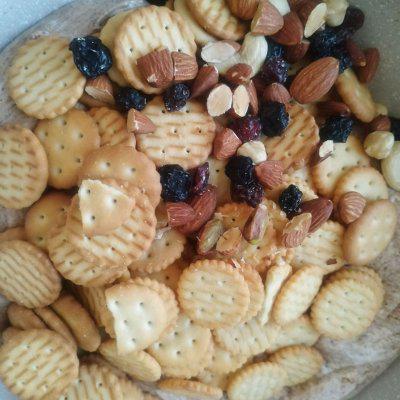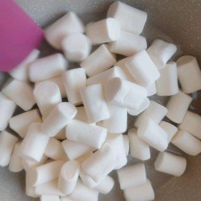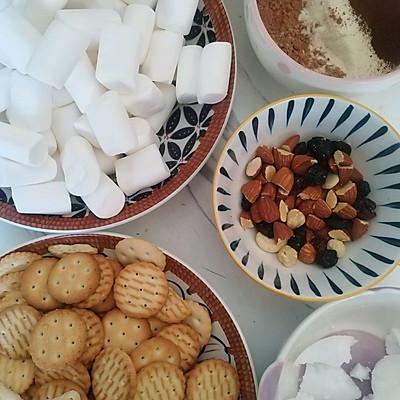 7、将饼干和果干均匀地包裹在棉花糖中;