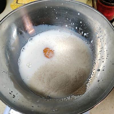 1、牛奶,鸡蛋,发酵粉,搅拌均匀。