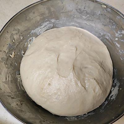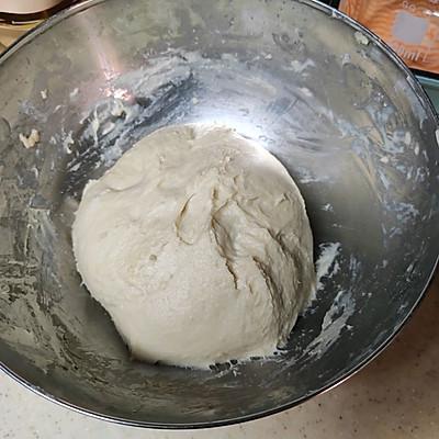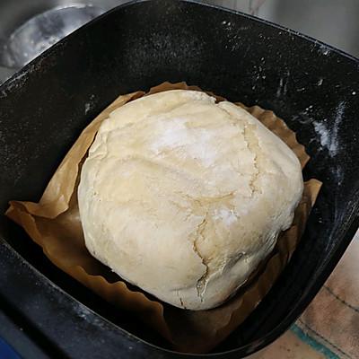 6、继续搅拌,盖子静止。 30 分钟。此时面团表面明显有韧性,不像刚开始那么粘。
