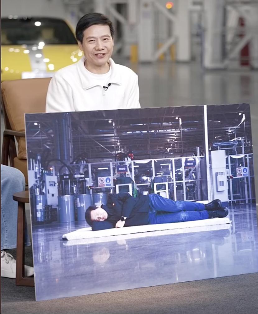 在当晚的直播中,雷军还从手机相册中挑选了12张难忘的瞬间照片。值得一提的是,雷军躺在工厂里拍照也是如此。当时这张照片一发布就被热搜了。雷军再次解释说,那天是庆祝10万辆小米汽车下线。他早上6点到达工厂,想着再睡一会儿,然后趁机先摆姿势。
