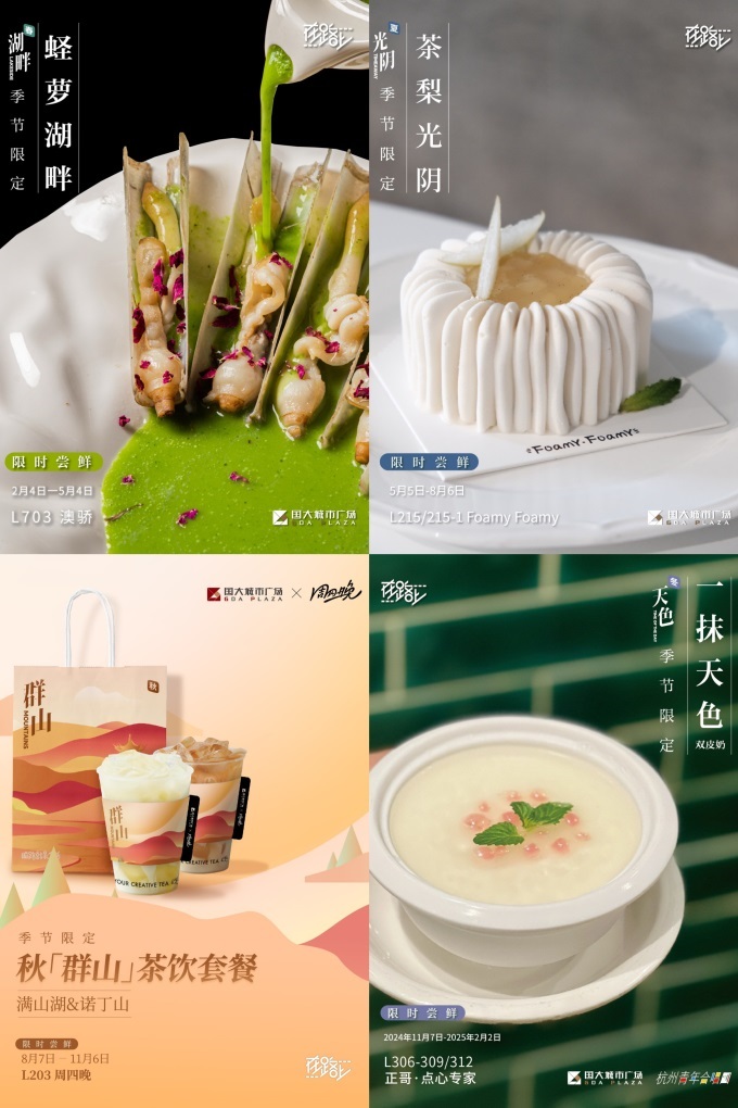 举例来说,深受消费者喜爱的「四季拼图冰箱贴纸」引起排队,用户只要现场打卡发布小红书就可以免费领取。这样做的好处是不仅可以传达国立大学第四季度的规划,增强国立大学在社交媒体上的知名度,还可以吸引顾客高频进店,带动客流和销售数据;商家方面,国立大学与现场商家合作推出独家限制产品,春分国立大学与澳大利亚骄傲联合推出。「蛏萝湖畔」,夏季Foamy Foamy「茶梨光阴」帮助周年庆典,秋季周四晚上「群山」茶包加上冬季正哥点心专家的茶包。「一抹天色」双皮奶...配合四季主题元素的专属产品,从细节入手,让商家和商场的概念同频,然后利用优质产品传递国立大学,形成闭环,这是国立大学专属的乐趣。
