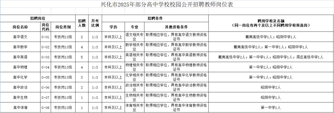 为进一步加强师资队伍建设,优化师资队伍结构,为提高教育教学质量奠定坚实基础,兴化市教育局将根据《江苏省事业单位公开招聘人员方法》、《关于进一步做好全省中小学新教师公开招聘工作的意见》、《关于进一步做好全市中小学教师公开招聘工作的通知》精神,赴相关高校招聘22名紧缺学科教师全额拨款。
