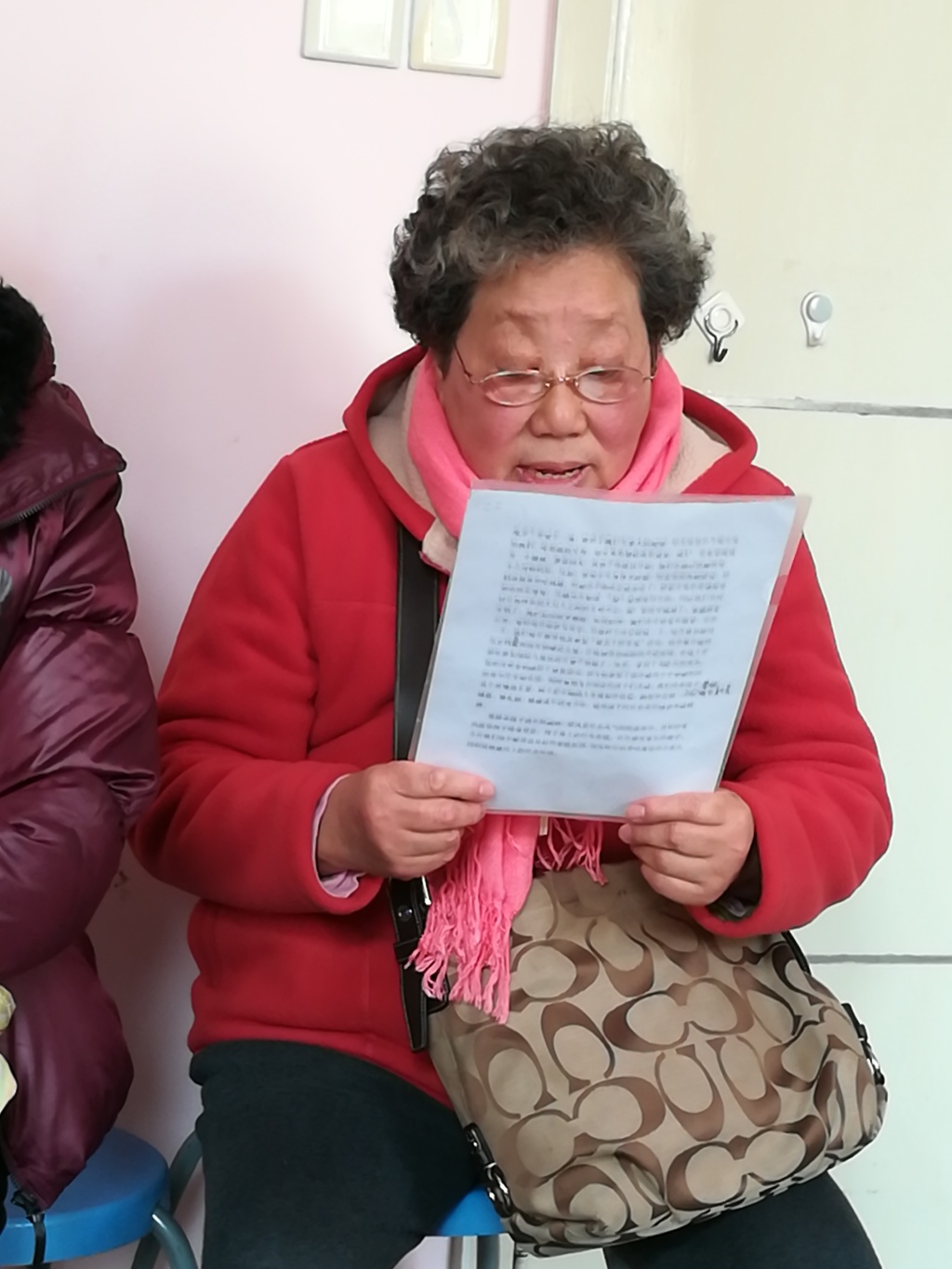 志愿者显然对老人很熟悉。“老李开心吗?哦,老施,你想唱歌吗?”被点击的施爷爷也没有扭捏,从夹克里拿出一卷歌词打印本。群体又笑了。“老施真的准备好了。”