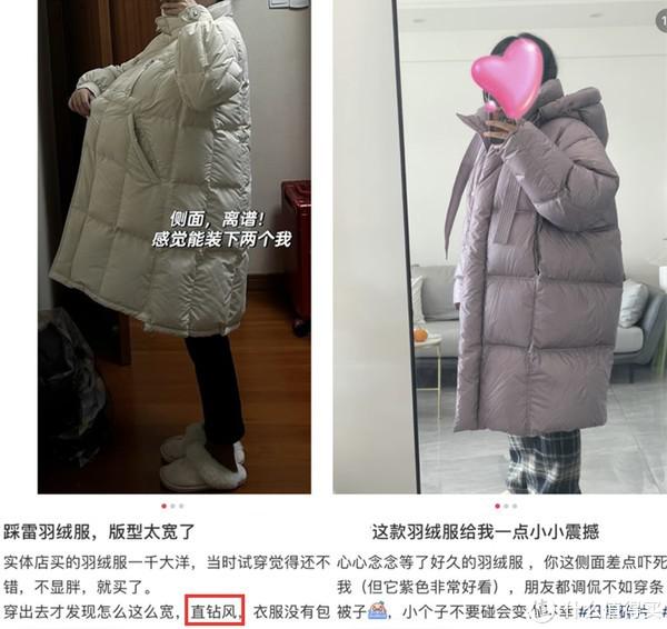 像是走辣妹风格的羽绒服,短到胸下的衣长既不保暖也不挡风;羽绒服走松弛风,从侧面看可以塞下两个人,走路时风呼呼地往衣服里灌,冷的人一个激灵。▲▼