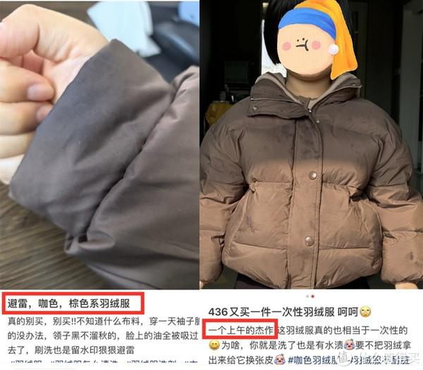 脏了之后,棕色羽绒服的位置非常明显,脏的地方就像穿了好几年没洗的桨。,一不小心就让自己社死…