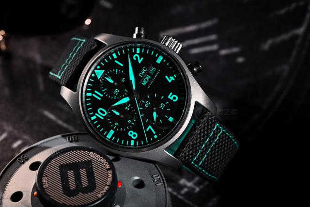 万国飞计“马石油”, 41 在mm飞计的基础上,用“马石油绿”代替了表盘表面的所有指针、时标和日历。很亮,很有辨识度。