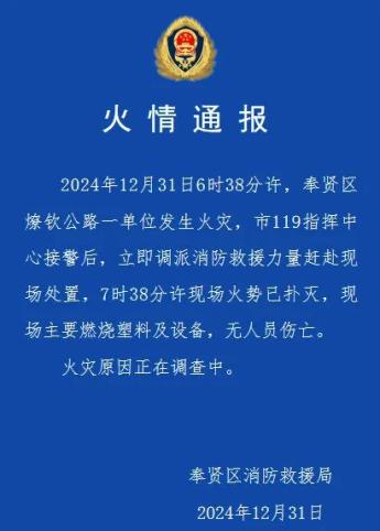 原题:“除夕夜!上海一单位早晨突发火灾”
