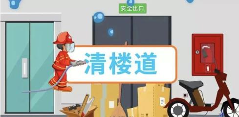 避免在走道、楼梯拐角、地下室等处堆放杂物;电瓶车不在楼梯间、疏散通道、安全出口充电。保持消防通道和安全通道畅通。